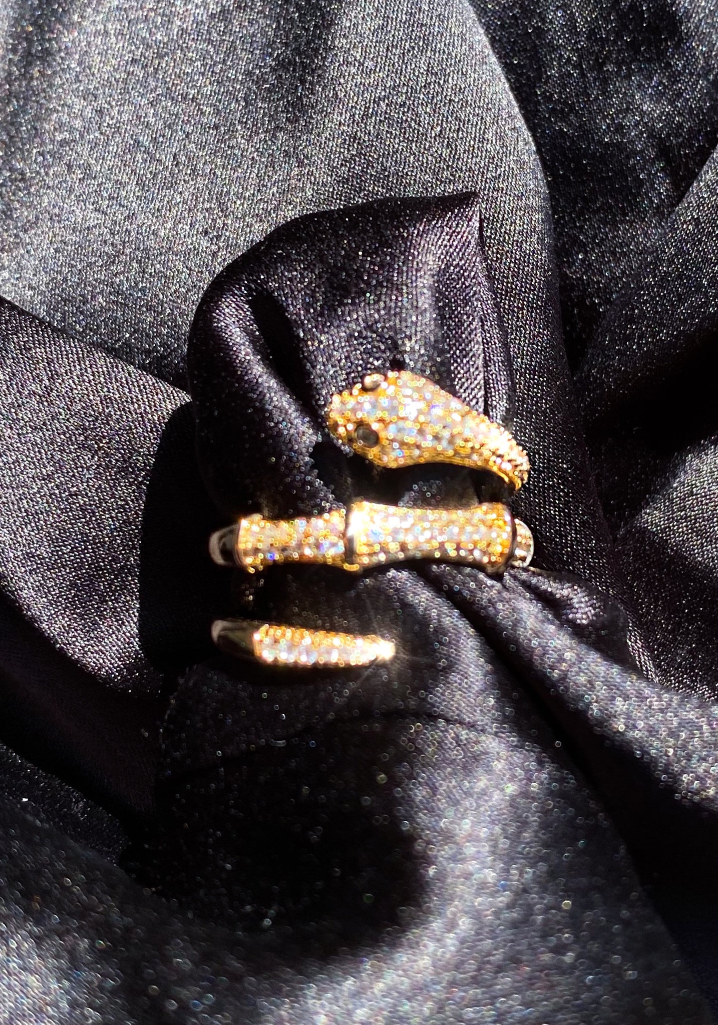 18k Gold plated snake ring with cubic zirconia stones throughout. Available in size 7.