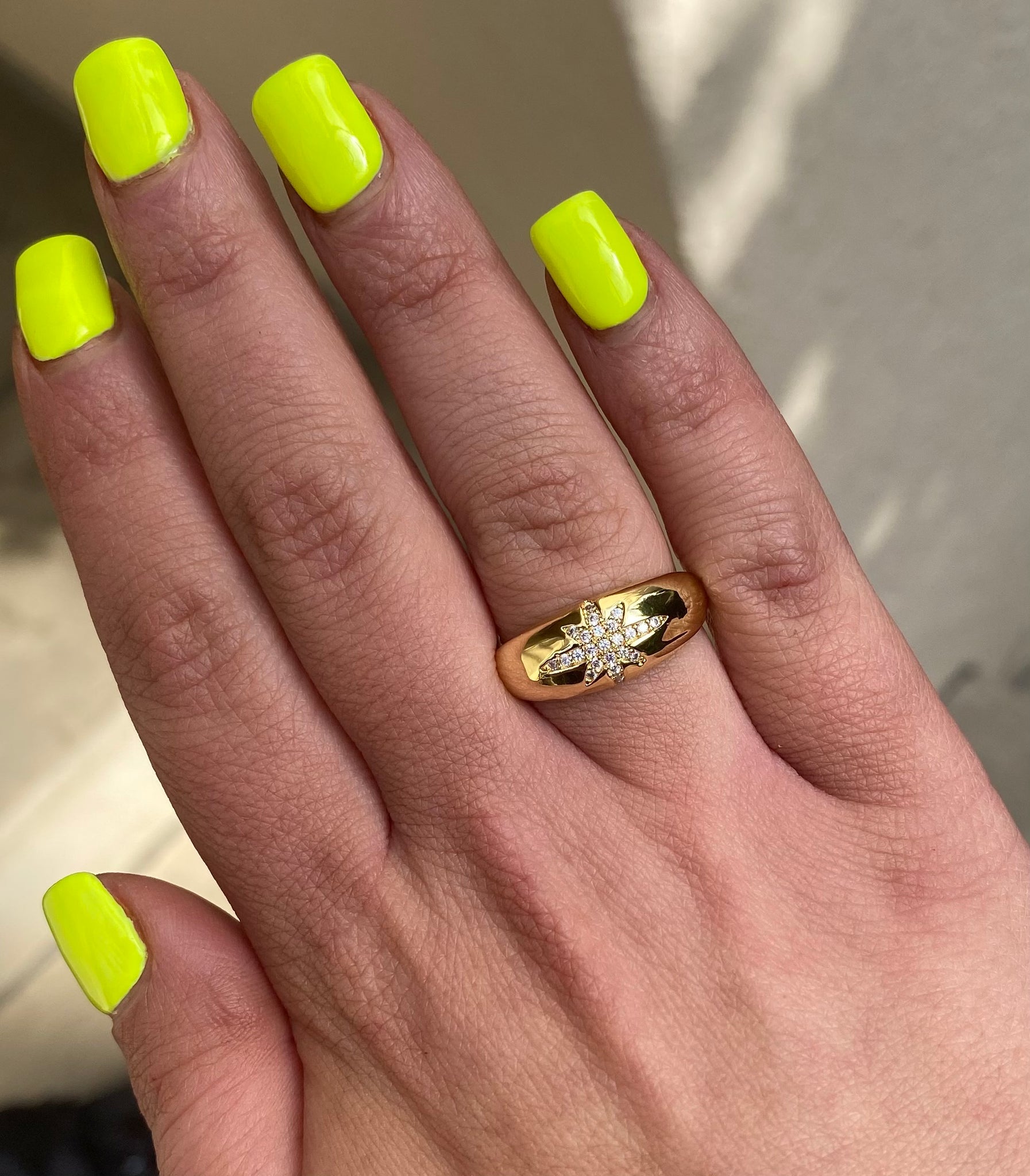 Gold Cubic Zirconia Adjustable Starburst Ring (Size 7 can be bent slightly to make bigger/smaller)