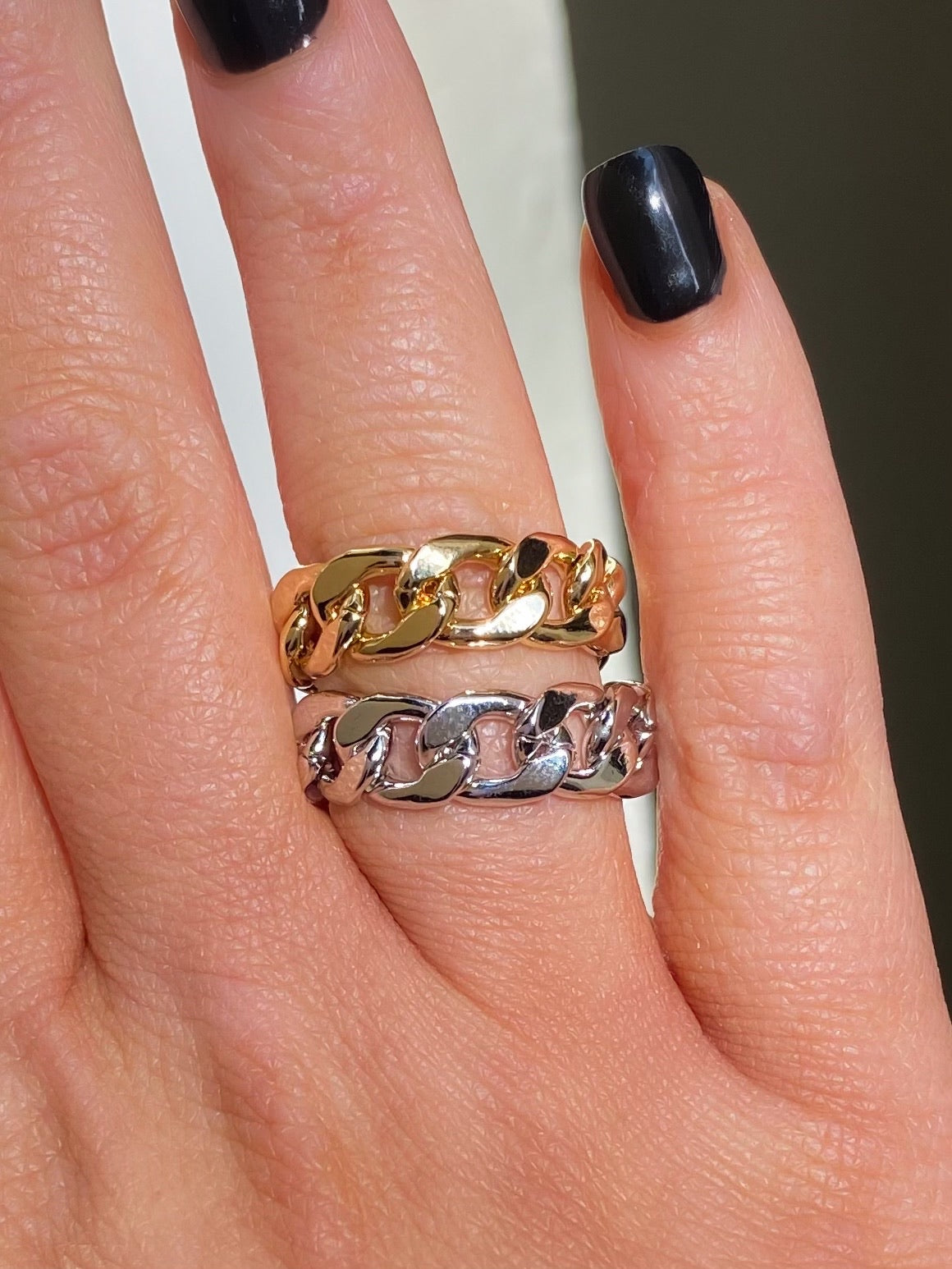 Gold plated chain link ring, available in Gold and Silver.