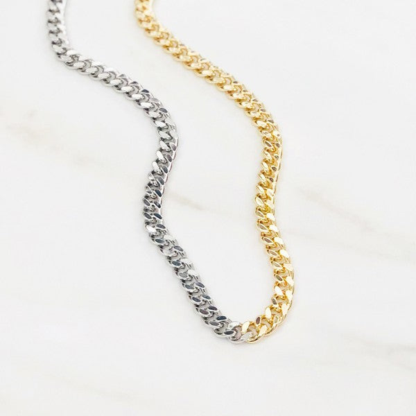 Gold Filled Two Tone Gold/Silver Chunky Cuban Link Chain Necklace