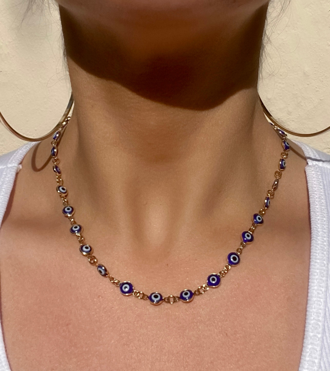 18k Evil Eye Chain Link Necklace