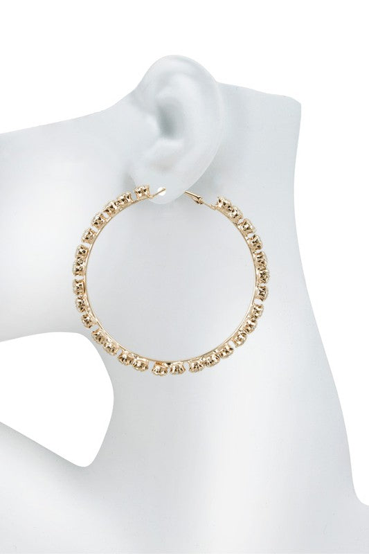 XL crystal encrusted hoop earrings 80mm. Available in Gold & Silver