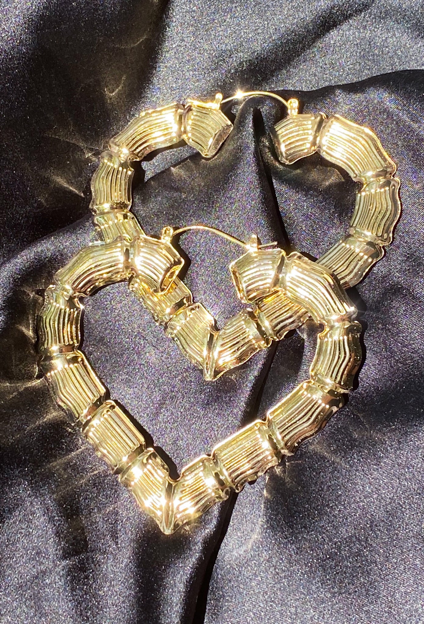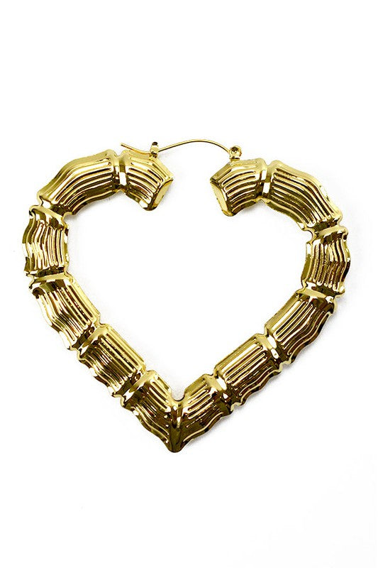 Gold Plated Heart Bamboo Earrings, Latch back.