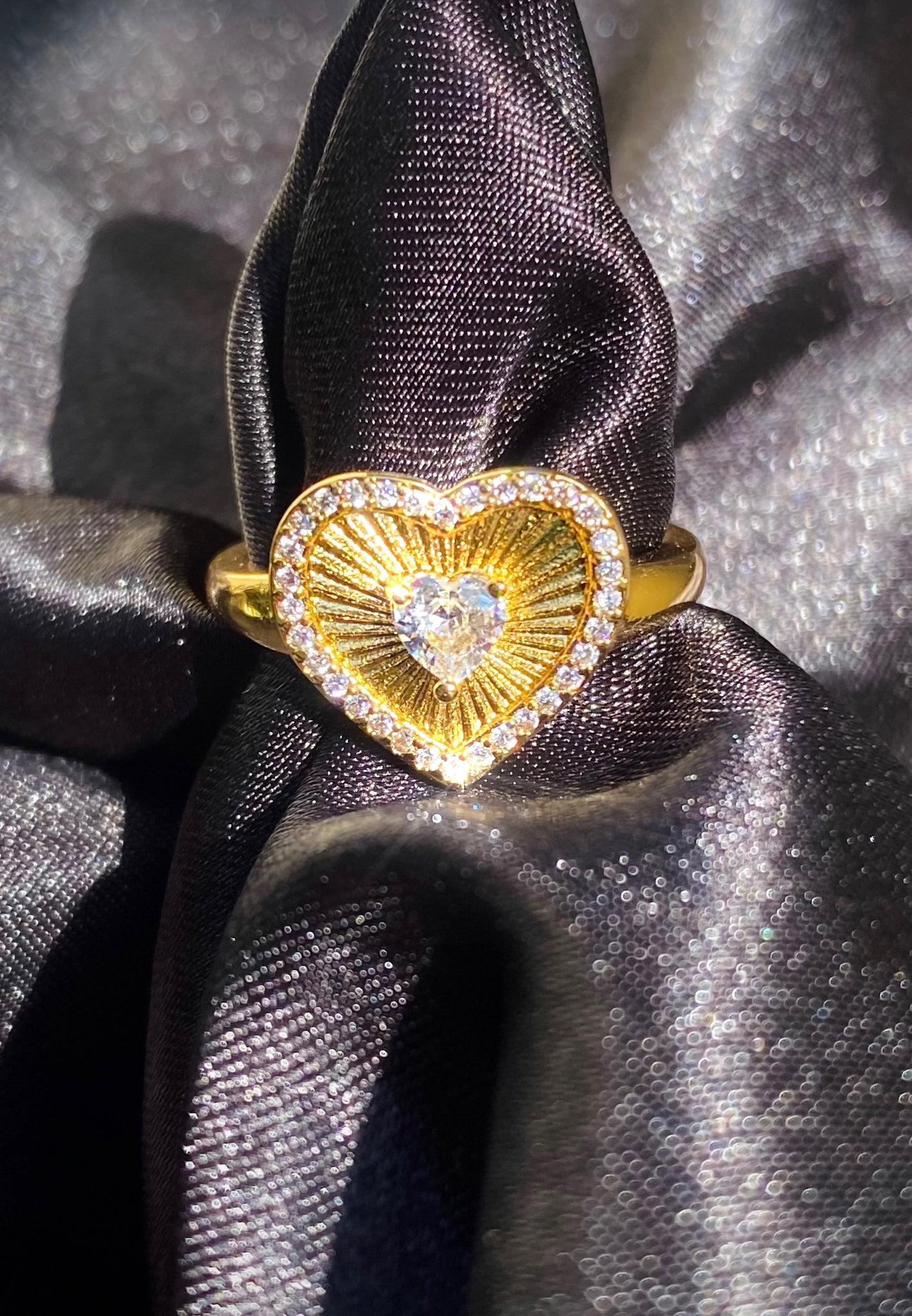 14k Gold Filled Sunburst Heart Ring, Adjustable - one size fits most US Size 6.5.