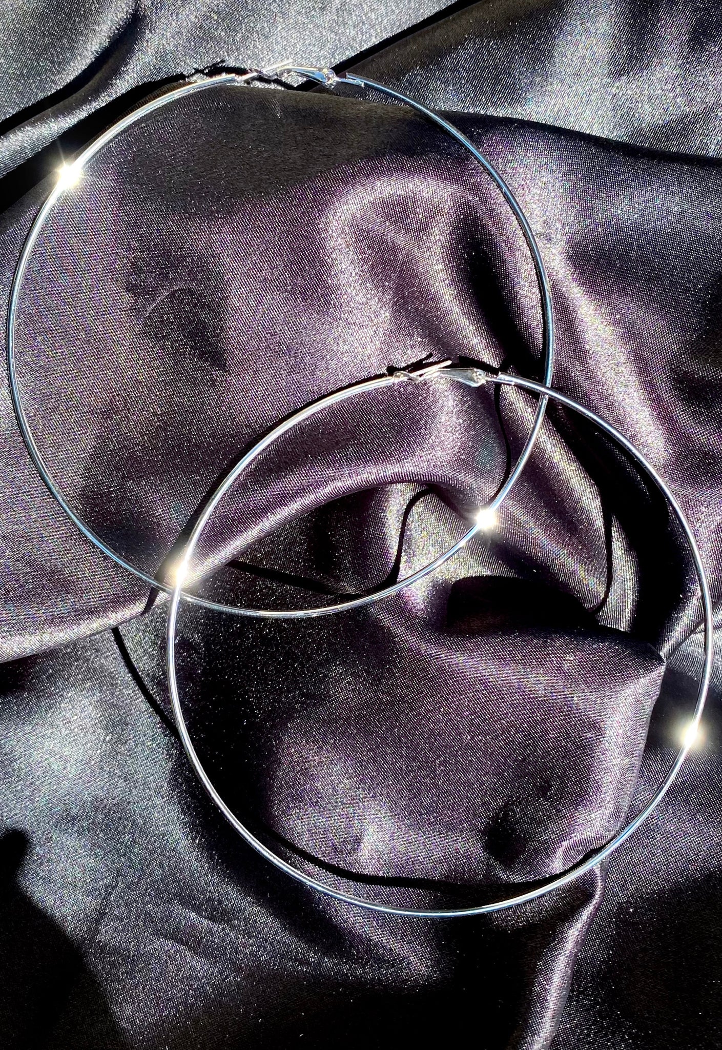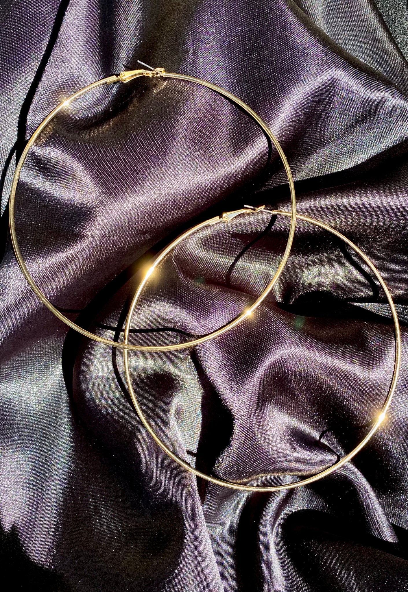XL hoop earrings, 4'' long, available in Gold & Silver.