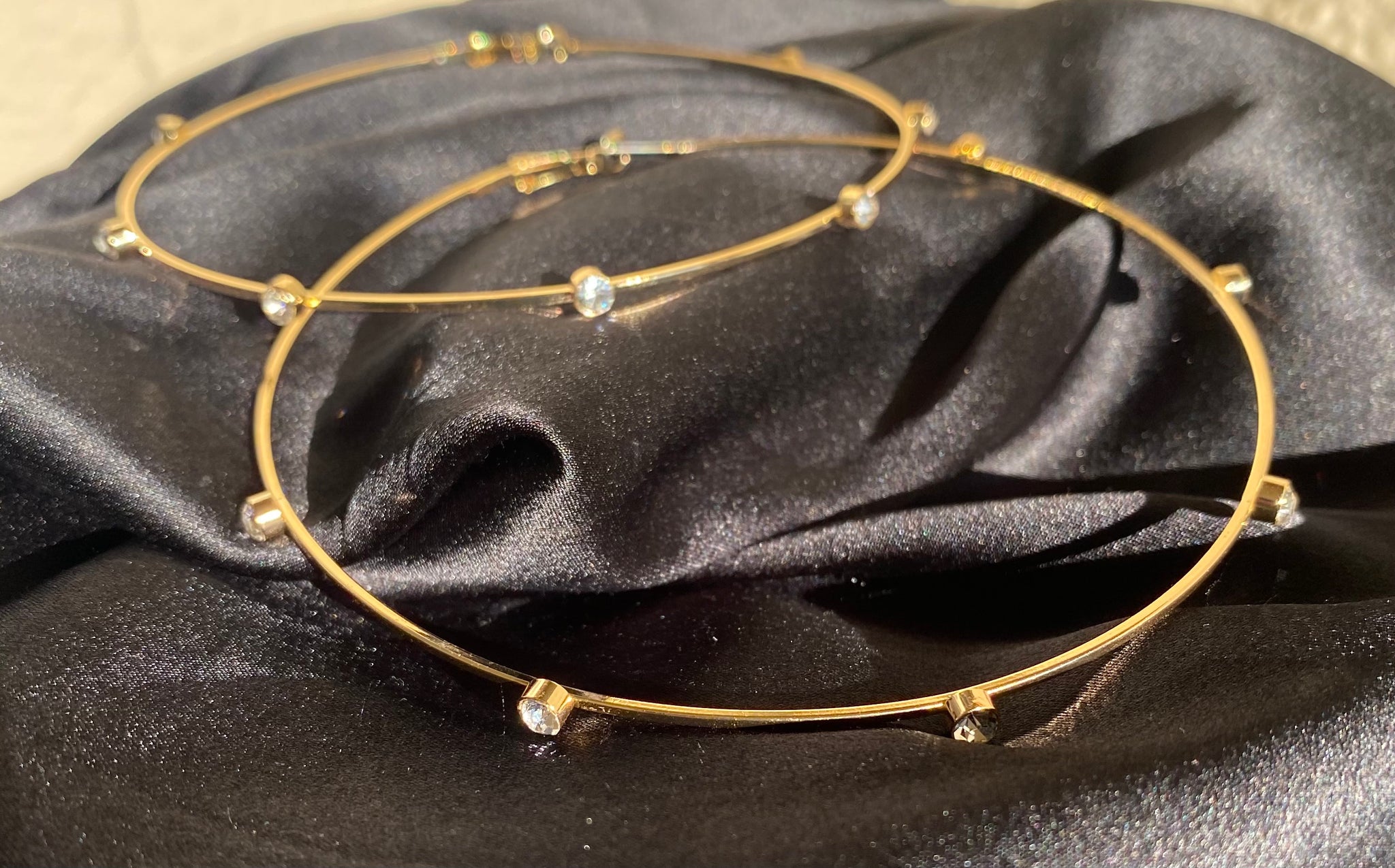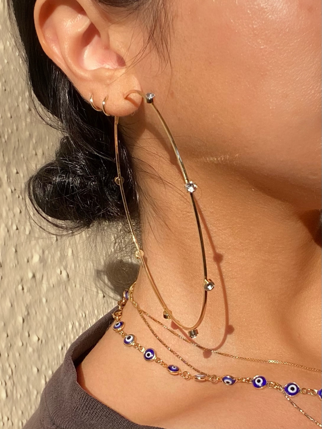 XL hoop earrings with rhinestone detail. 4'' Long.